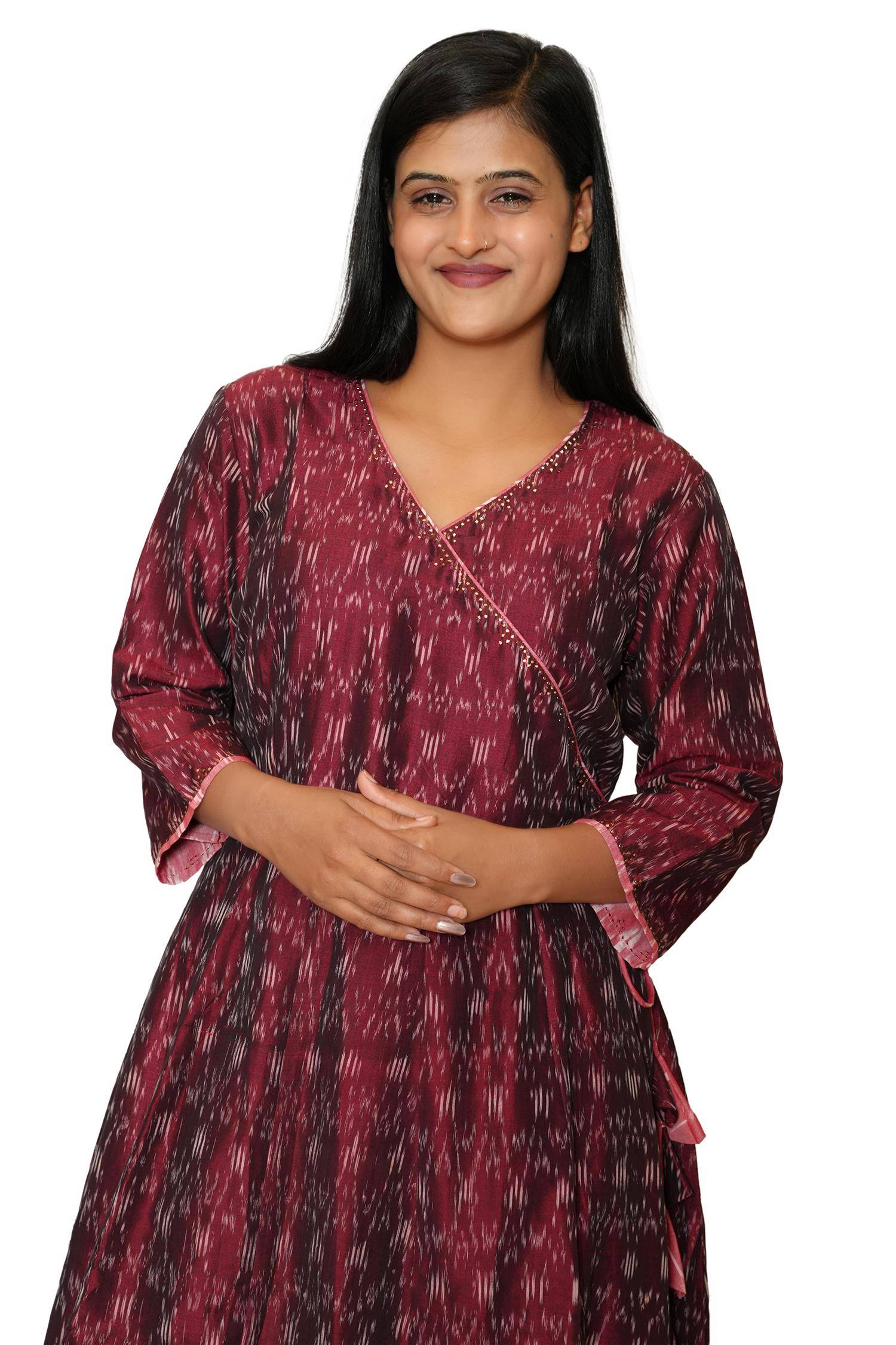 • Maroon Color Angarkha Style Anarkali Kurti(Lining)